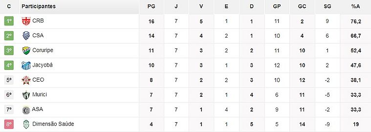A primeira fase do Campeonato Alagoano 2019 terminou no último domingo (17) com a realização da sétima rodada. CRB, CSA, Coruripe e Jaciobá figuraram entre as quatro primeiras equipes e estão classificados para as semifinais.