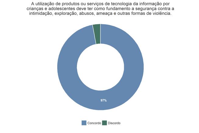 Na opinião dos internautas, a segurança contra a intimidação, exploração, abusos, ameaça e outras formas de violência deve ser princípio norteador no uso de produtos ou serviços de tecnologia da informação por crianças e adolescentes.
