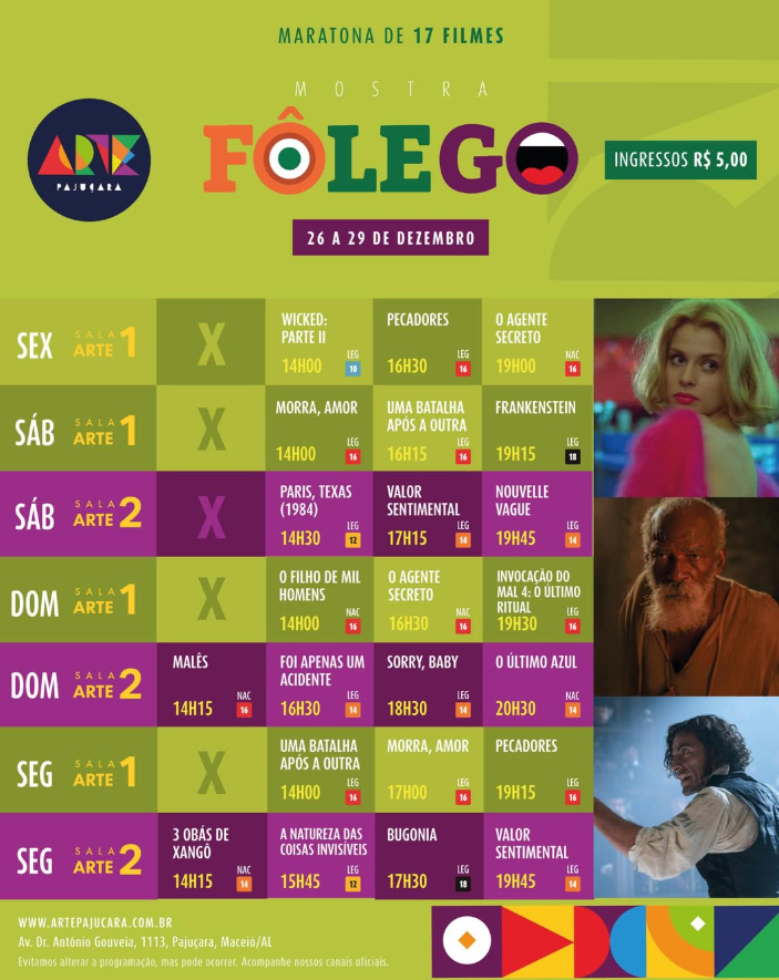 Em cartaz no: Arapiraca Partage Shopping, Centerplex (Shopping Pátio Maceió) e Cinesystem (Parque Shopping).