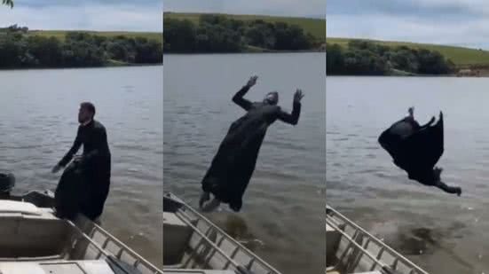 No vídeo publicado na internet, o padre, vestindo a roupa eclesiástica, aparece posicionado na borda de um barco, de costas para o lago. Em seguida, dá a cambalhota para trás e mergulha na água. Veja abaixo: