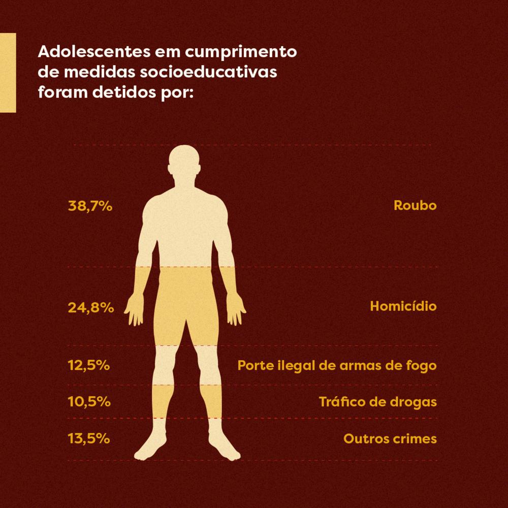Ao contrário do que muita gente pensa, os números espelham que o tráfico não é o delito mais praticado. Entre os apreendidos, o crime que lidera o ranking da violência é o roubo, seguido por homicídio e porte de arma de fogo. Seis adolescentes de 13 anos estão cumprindo medidas socioeducativas por estes crimes. Negociar substâncias ilícitas vem em 4º lugar. “Isso acontece por conta da sedução da possibilidade de poder e do dinheiro fácil exercida pelas facções criminosas que recrutam nossos adolescentes cada vez mais cedo”, observou Denise.