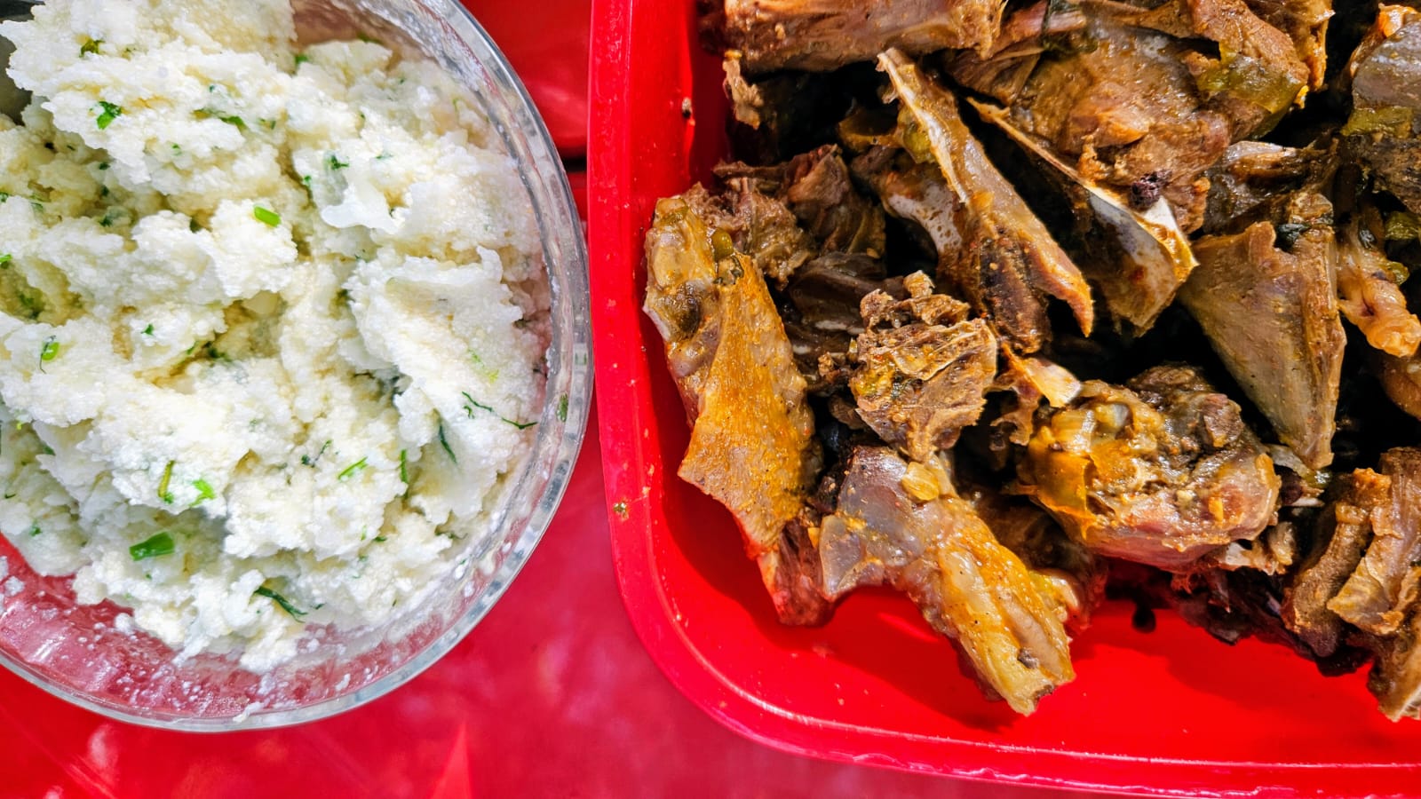 Entre as proteínas, é possível pedir um pouco de cada para experimentar tudo: galinha e carne guisadas. Já a bisteca e a costela, preparadas na churrasqueira, são as grandes estrelas do Sabor Caseiro. Para acompanhar, vêm o purê, arroz com soja, macarrão e saladinha. Tudo com tempero caseiro, preparado pelo time de mulheres, além de Gilda, Daiane, Edna e Gilvânia, que mantêm as tradições da cozinha rural com muito sabor.