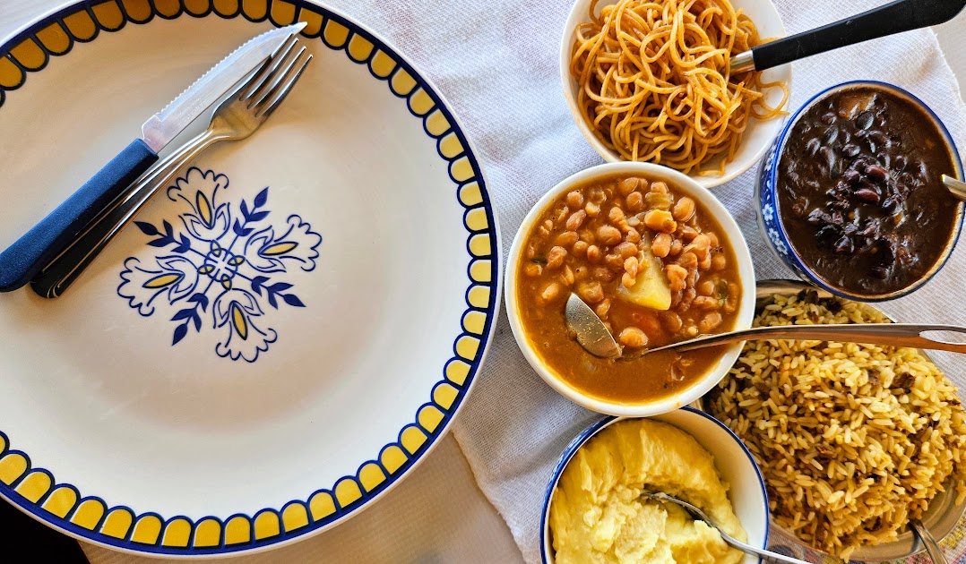 Sabor Caseiro: carne e galinha guisada, costela grelhada, arroz com soja, feijões, salada e macarrão