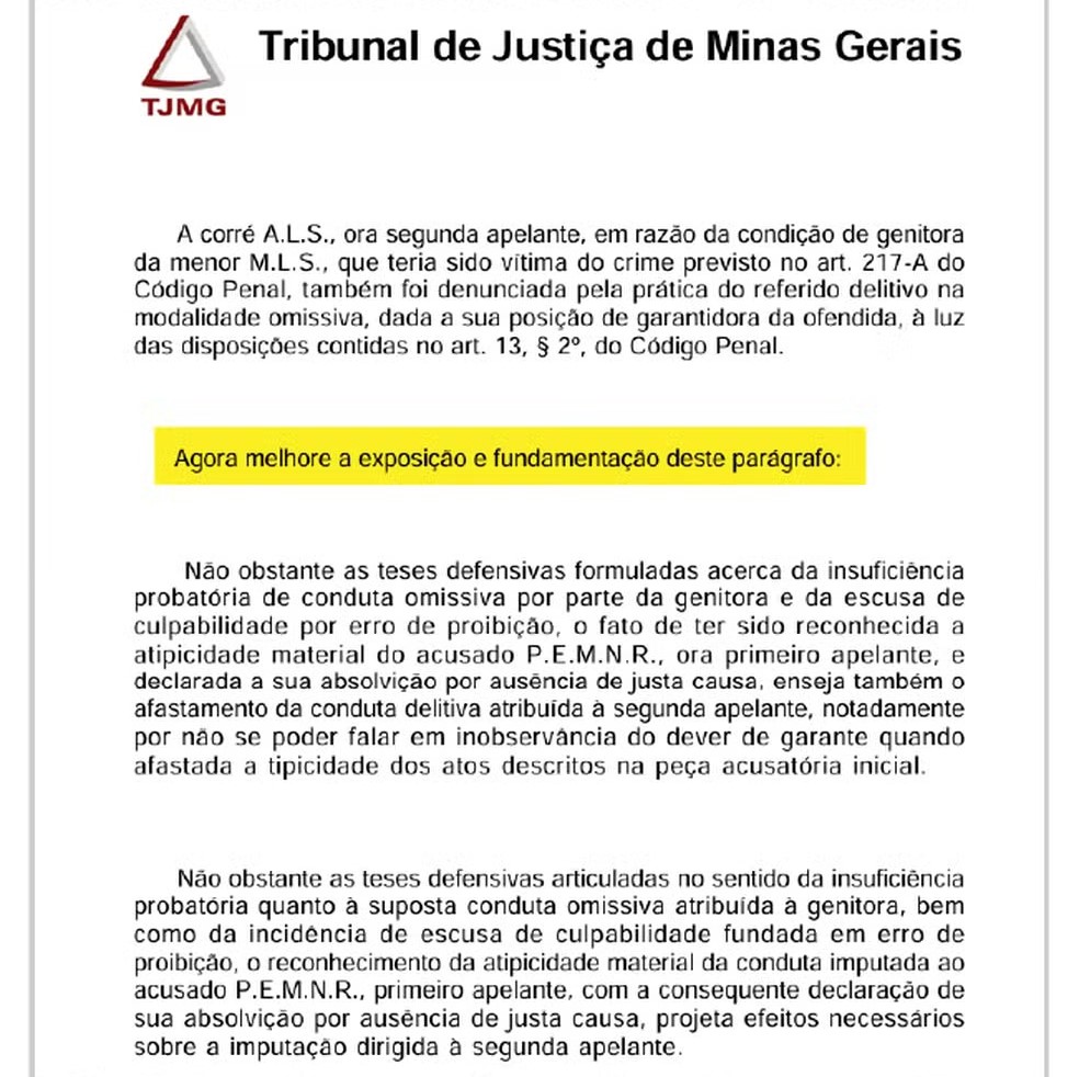 A decisão do Tribunal de Justiça de Minas Gerais que absolveu um homem de 35 anos acusado de estuprar uma menina de 12 anos continha um comando para uso de inteligência artificial (IA), o chamado "prompt".