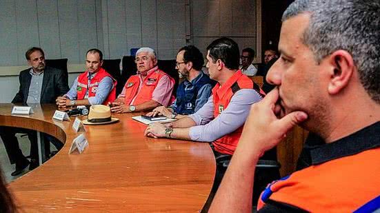 Coletiva de imprensa com a Defesa Civil Nacional, Estadual e Municipal (Foto:Pei Fon/Secom Maceió)