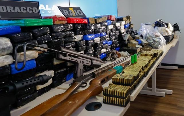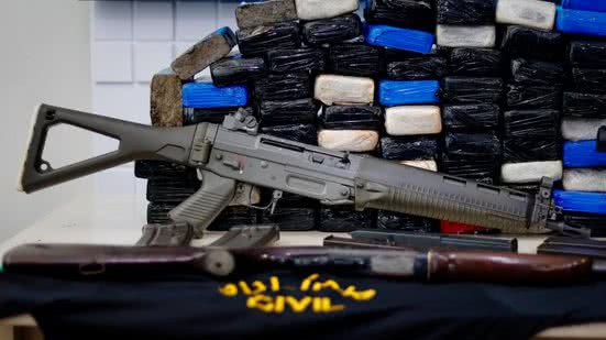 Entre os armamentos apreendidos estavam um fuzil calibre 556, duas submetralhadoras calibre 9mm, duas espingardas calibre 12, um revólver calibre 38 e uma espingarda de pressão.