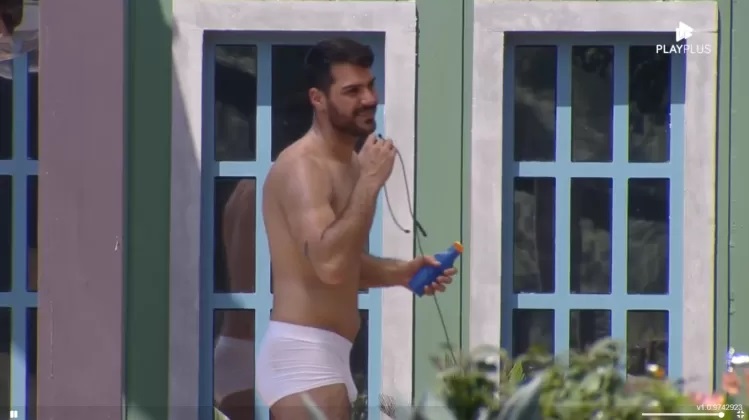 "Ele não pode, pô", disse Bruno, lembrando que Shayan está na baia e, pela regra, não pode usar a piscina da sede.