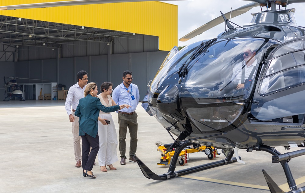 Ao final da reunião, o coronel André Madeiro e a coronel Elaine Monteiro convidaram Monique Assis e Jefferson Correia para um sobrevoo a bordo do Falcão 2, aeronave recém-adquirida pelo Governo de Alagoas e que integra a frota do DEA.