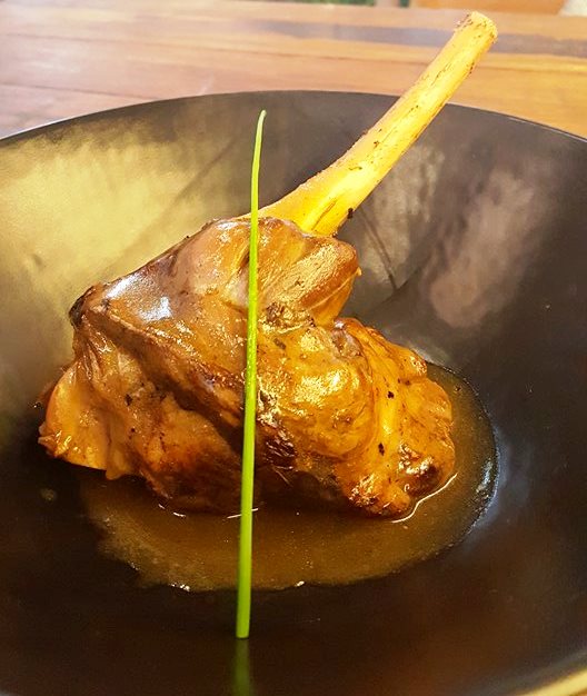 Mas vamos entender: o nome de stinco significa canela, que o chef Vítor Generoso preparou com toda realeza. A canela de cordeiro é marinada ao vinho com os segredinhos do chef de um dia para o outro, depois é cozida na marinada por até seis horas. Junto vem caldo, uma redução do próprio molho do cordeirinho temperado com alho, salsinha e alecrim.