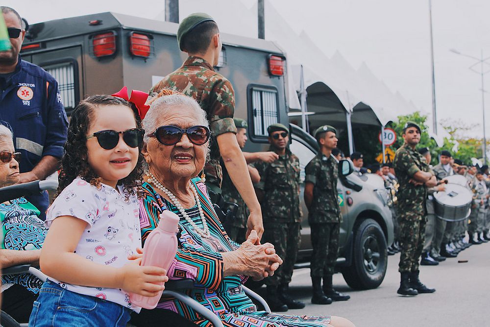 Mesmo com 96 anos de idade, numa cadeira de rodas, dona Gasparina Mazoni Martins fez questão de assistir ao Desfile da Independência."Essa é a data mais importante para o nosso Brasil. Todos os anos eu venho. Eu desejo (à nação) felicidade, saúde, paz e amor a Deus", declarou Gasparina.
