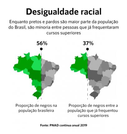 Ainda de acordo com Danilo, essa desigualdade no acesso à educação poderia ser resolvida com investimento na área. “Muitas dessas questões, a gente consegue resolver também com adoção de políticas de ações afirmativas, que são políticas públicas que visam reparar desigualdades históricas. Uma delas seriam as cotas, mais investimentos na área da saúde da população negra, distribuição de livros gratuitos, de cursos”, afirmou.