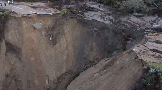 O Caltrans (Departamento de Transporte da Califórnia) divulgou que o fluxo de detritos “sobrecarregou a infraestrutura de drenagem, fluiu pela via e erodiu a estrada, resultando na perda total” de uma parte da Rodovia 1, a cerca de 24 quilômetros ao sul do “Big Sur”