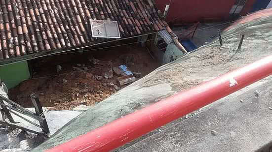 Na casa residem quatros pessoas, entre os moradores um idosos de 80 anos. Moradores da comunidade estão preocupados que outros imóveis sejam comprometidos por conta do deslizamento de terra.