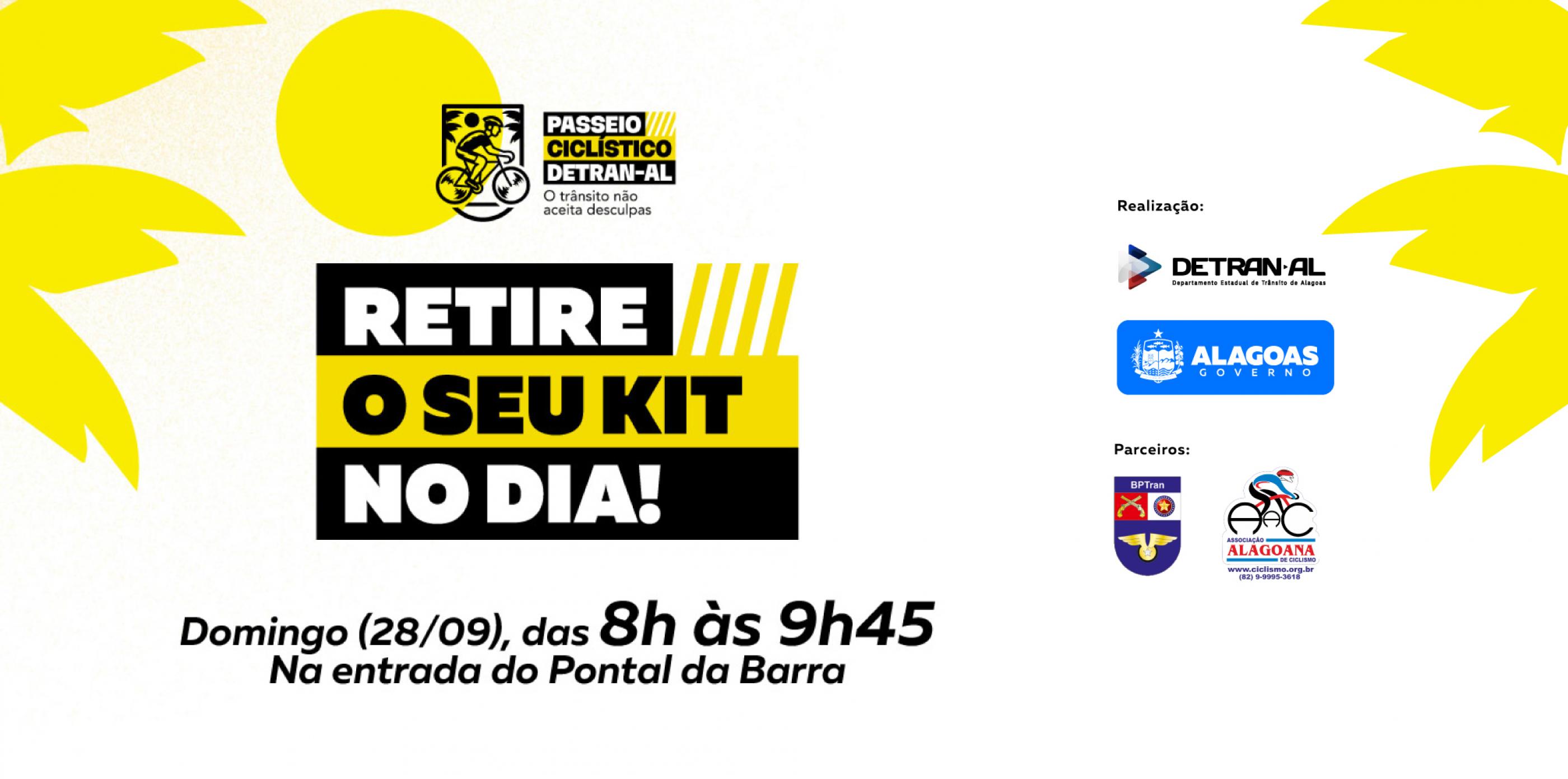 Para encerrar as atividades da Semana Nacional de Trânsito, o Departamento Estadual de Trânsito de Alagoas irá realizar o 1º Passeio Ciclístico Detran-AL. A ação de conscientização acontece no próximo domingo (28), com a concentração e entrega dos kits a partir das 8 horas, na quadra de esportes do Pontal da Barra.