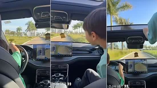 No vídeo, que viralizou nas redes sociais, Gabriel, de 7 anos, dirige o carro dentro da mansão onde mora com a família, em Goiânia, enquanto o irmão mais novo, Samuel, está no banco do passageiro.