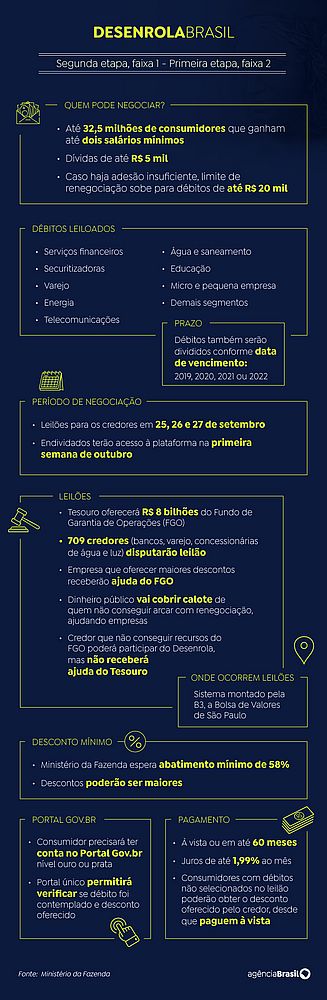 Iniciada em outubro de 2023, a Faixa 1 engloba dívidas que tenham sido negativadas entre janeiro de 2019 e dezembro de 2022 e não podem ultrapassar o valor atualizado de R$ 20 mil cada (valor de cada dívida antes dos descontos do Desenrola).