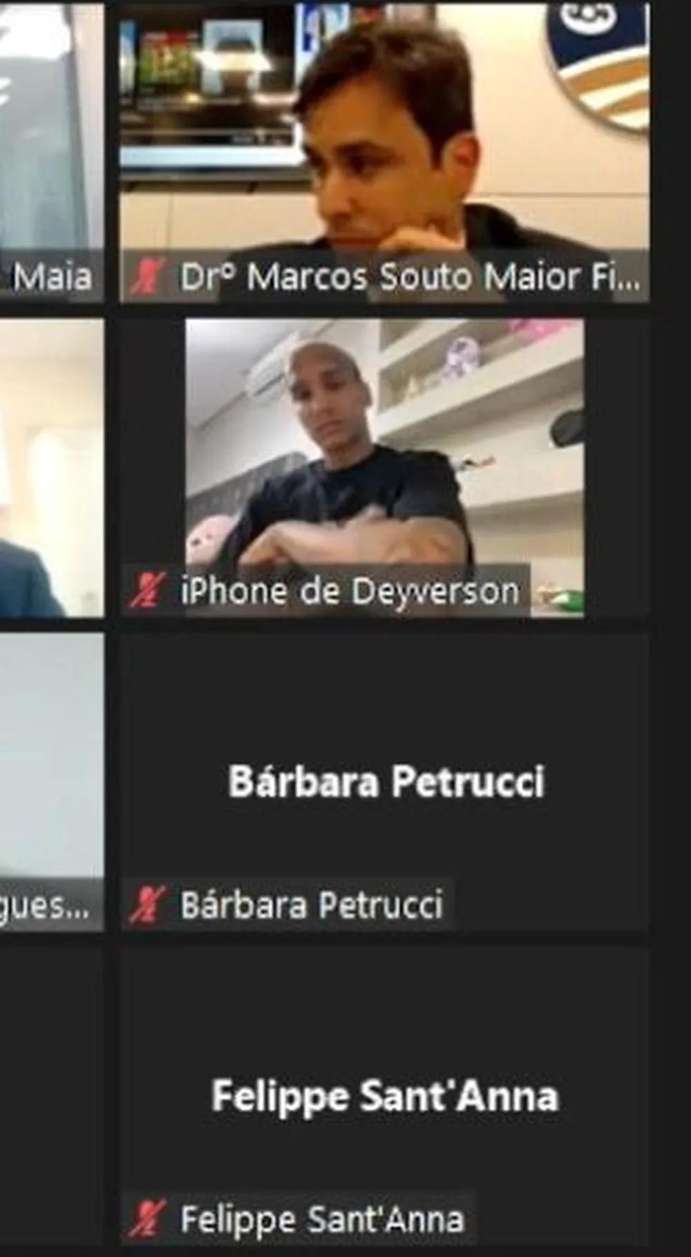 A imagem inusitada dele na cama foi resultado de um descuido do jogador, segundo explica a assessoria do Cuiabá. Deyverson se esqueceu de desligar a câmera do celular depois de prestar depoimento — o que ele fez sentado em seu quarto, como mostra a imagem abaixo. O ex-atacante do Palmeiras resolveu se deitar para ouvir o restante da sessão, acreditando que não estava aparecendo para os outros participantes. Quando se deu conta, o print já havia sido feito e acabou viralizando na internet.