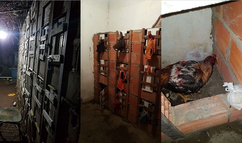 No local onde a rinha funcionava, a polícia encontrou uma espécie de armário que servia para guardar as aves. Nas fotos divulgadas pela polícia, é possível observar que esse armário reserva espaços pequenos e abafados. Dezenas de aves foram resgatadas, algumas com ferimentos.