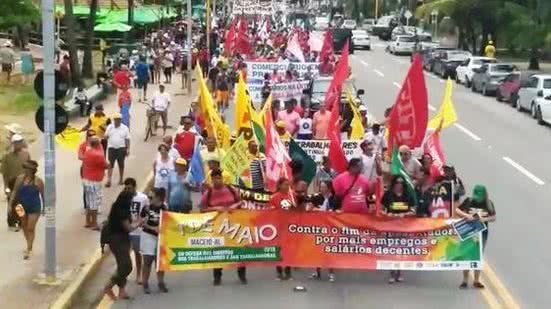 Grupos formados por trabalhadores e integrantes de movimentos sociais e sindicais se concentraram na manhã desta quarta-feira, 1º de maio, dia do Trabalhador, na orla de Pajuçara, em Maceió, para fazer um protesto contra a reforma da Previdência.