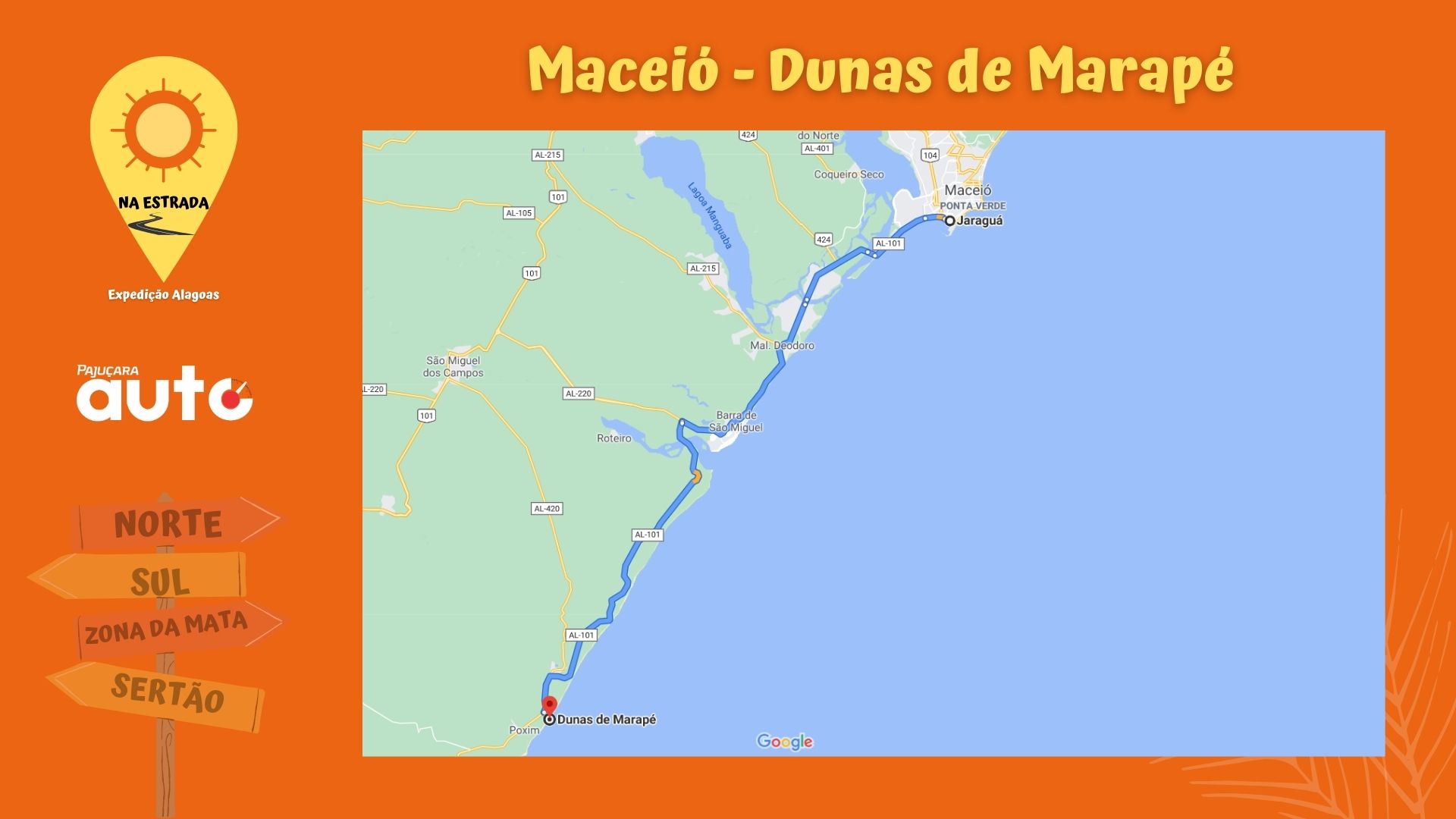 Nosso roteiro inclui um Day Use em um complexo bem legal, Dunas de Marapé. De Maceió até Dunas, que fica no município de Jequiá da Praia, são 67 km de distância da capital, cerca de 1h de viagem.