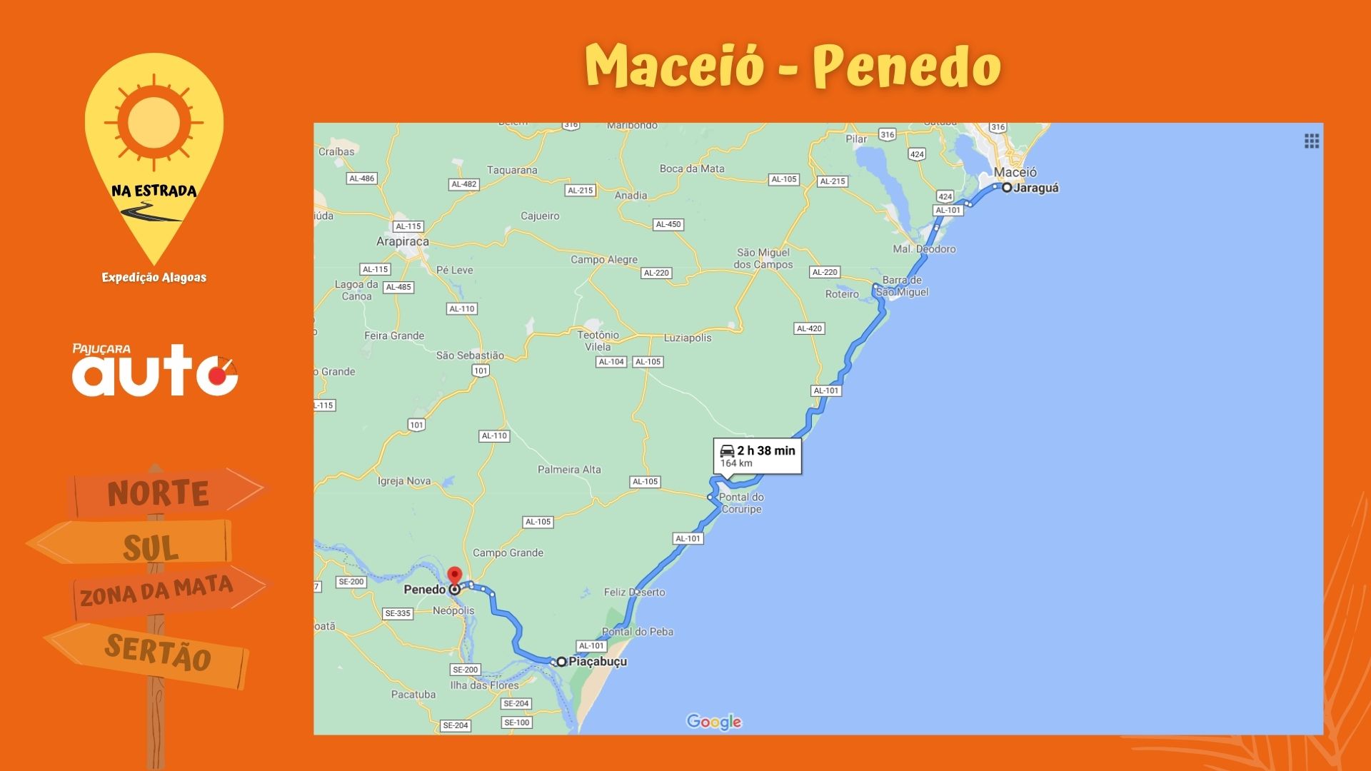 Saímos de Maceió num sábado pela manhã. De Maceió até Penedo, são 164 km de distância, uma viagem de 2h30.