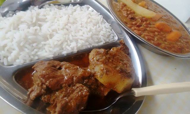 Nesta semana indiquei o carneiro do Duda, o principal astro da gastronomia popular alagoana. Contudo, não provei o prato comercial do restaurante, porque não tinha mais espaço no estômago, então retornei na quinta-feira para provar o Prato Comercial, também conhecido Prato Feito (PF) por R$ 12,00. Bom e barato, servido numa bandeja de alumínio com três divisões, uma pra o arroz, outra com salada (alface, tomate e cebola) e uma terceira porção de bife de panela com caldinho da própria carne, batatas inglesas e uma porção separada de feijão caseiro. Maravilha, sabor caseiro, tempero na medida certa. Restaurante do Duda tem 37 anos e o tempero da Marinaura é de mãe, com amor. Imperdível. Vem nas versões guisado de boi, peixe e galinha.