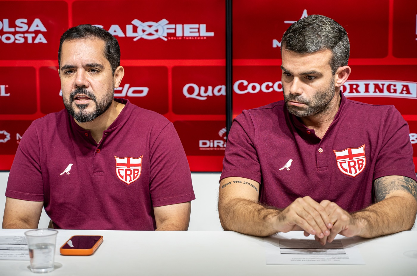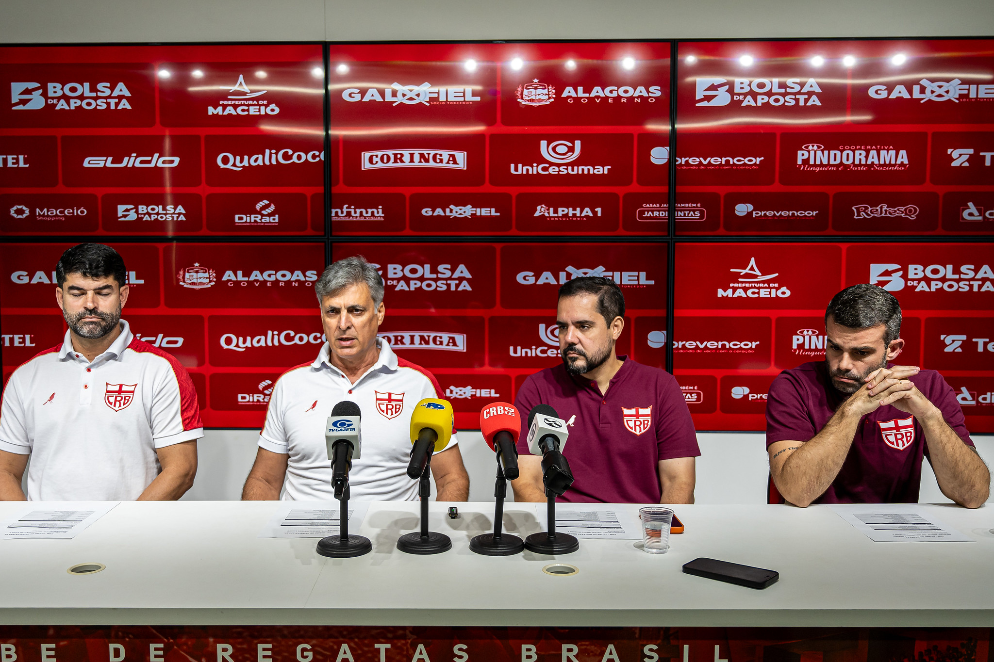 "Estou triste pelas condições que vêm acontecendo, como citado pelo presidente, com relação a traumas que não temos como controlar. Há 15 dias, quando estávamos há nove jogos sem perder, era 'Ah, o melhor elenco, vai buscar o acesso, e coisa e tal, e bla bla bla'. Estamos acostumados a esse momento. Não posso estar dando desculpas, porque o torcedor está cansado de desculpas. Mas estamos aqui por respeito e consideração que temos com o nosso torcedor. Estamos aqui para dar a cara a tapa, dizer que estamos buscando as soluções, que vamos buscar o que for preciso fazer para que nossa equipe volte a vencer. Quando passar essa turbulência e mais fase, tudo passa na vida, a gente acredita que logo mais vai voltar às vitórias e siga as competições. Só jogamos quatro jogos na Série B, ainda faltam 34, tem jogo pra caramba. Tenho certeza que no final a gente vai estar aqui tendo uma reunião totalmente diferente e contando situações favoráveis do CRB".
