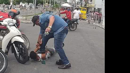 Um policial militar reformado, identificado como Élcio Sarmento, agrediu um jovem e o ameaçou de prisão na tarde desta quinta-feira (7), em União dos Palmares, na Zona da Mata de Alagoas.