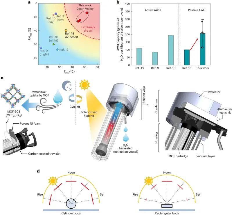 O dispositivo, um coletor de água atmosférico, emprega uma estrutura ultraporosa conhecida como MOF (Metal-Organic Framework) para capturar e converter a umidade do ar em água. Esta inovação foi testada com sucesso no Parque Nacional do Vale da Morte, o local mais seco e quente da América do Norte. Os resultados sugerem que o aparelho pode fornecer água limpa praticamente em qualquer lugar, mesmo nas condições mais adversas causadas pelas mudanças climáticas.