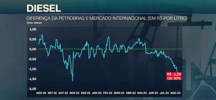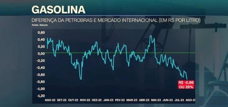Isso deixou o preço da gasolina da Petrobras está com uma diferença de R$ 0,86 abaixo da paridade, representando um valor 26% inferior ao praticado fora do Brasil.