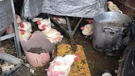 “Ao fiscalizarmos o local, percebemos que não havia pias e revestimentos em pisos e paredes, o armazenamento de instrumentos de trabalho e alimentos era totalmente precário e o acúmulo de sangue, vísceras, penas e fezes de frango por todo o estabelecimento”, afirma.