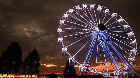 O brinquedo é a maior roda-gigante itinerante do Brasil e tem 36 metros de altura. A atração está instalada no Mirante Beagá, no bairro Olhos D'água, desde 10 de junho.