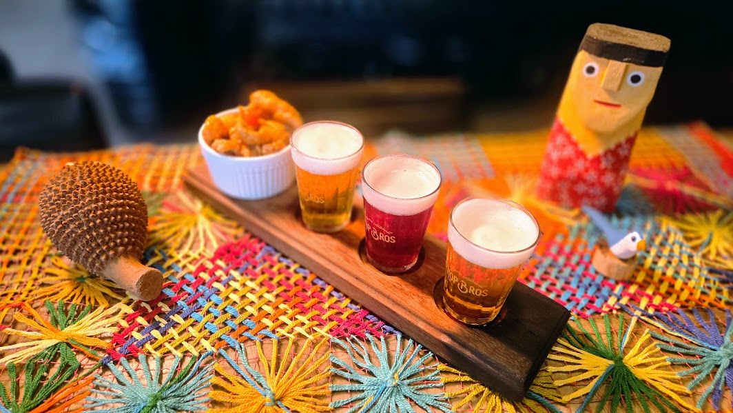 Hop Bros (@hopbroscervejaria) – Régua de cerveja artesanal com torresmo, homenagem ao artesão Jasson (Belo Monte). Rua Sá e Albuquerque, 191 - Jaraguá