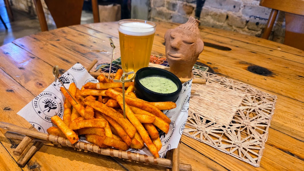 Toca do Calango (@tocadocalangogastrobar) – Baião de dois com chope no almoço ou batata frita com chope no jantar, homenagem à Dona Irineia (União dos Palmares). Rua Melo Póvoas, 258-B - Jaraguá
