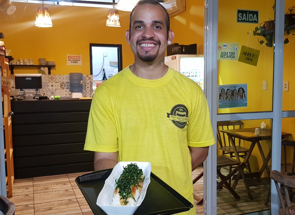 Paulo Ferreira de dia é garçom, e de noite é empreendedor de hot dog