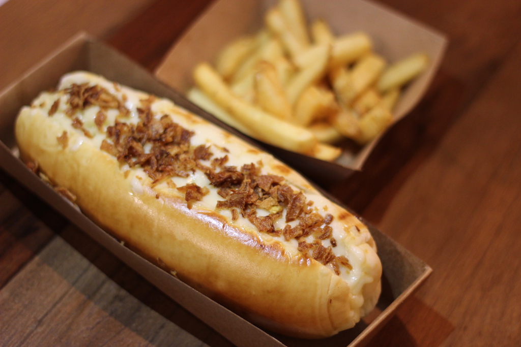 A nova casa também oferece dois tipos de pão: o brioche e a baquete, ambos de 20 cm. No cardápio do Dog & Co as salsichas são as mais típicas do mundo, Swiss Dog (levemente defumada e bem macia) e a Frankfurt (mais defumada e tenra). A terceira é a vegana, a base de grão de bico, cenoura, beterraba e especiarias. De qual gostei? De todas. Literalmente, comi com gula, as salsichas que são cozidas e grelhadas. Os molhinhos? Adorei todos, em especial o de chilli (carne moída) e a maionese de cenoura, que é show de bola.