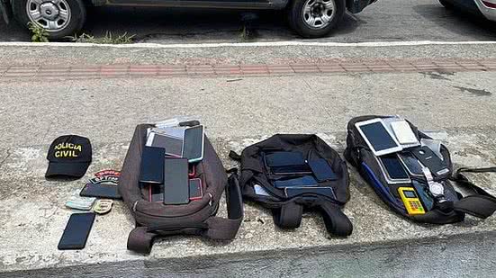 Durante a operação, as equipes conseguiram apreender 16 aparelhos celulares, um tablet, uma máquina de cartão de crédito, dois relógios, dois carregadores portáteis e R$ 1.732 mil.