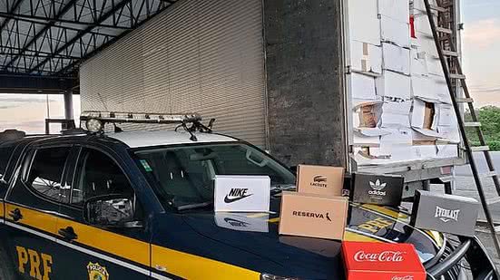Durante a verificação, foi constatado que o caminhão transportava diversas caixas de calçados sem nota fiscal e sem características de originalidade. Foram apreendidos calçados de várias marcas conhecidas, todos falsificados.