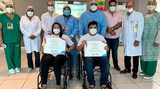 Emocionados, ao saírem dos leitos clínicos da unidade hospitalar, eles exibiam a placa “Eu venci a Covid”, sob os aplausos da equipe multidisciplinar e da direção geral do HM. Com a voz embargada, Etiene sentiu necessidade de externar toda gratidão, já que, além dela, muitas pessoas ficaram internadas ao longo da semana e saíram vitoriosas da batalha contra o novo coronavírus.