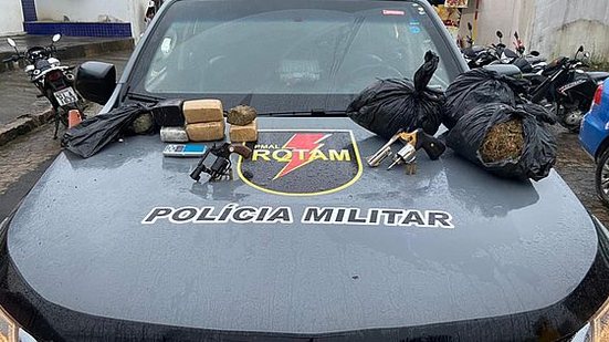 Com eles, a polícia apreendeu mais de cinco quilos de maconha e dois revólveres calibre 38 com munições, além de uma balança de precisão.