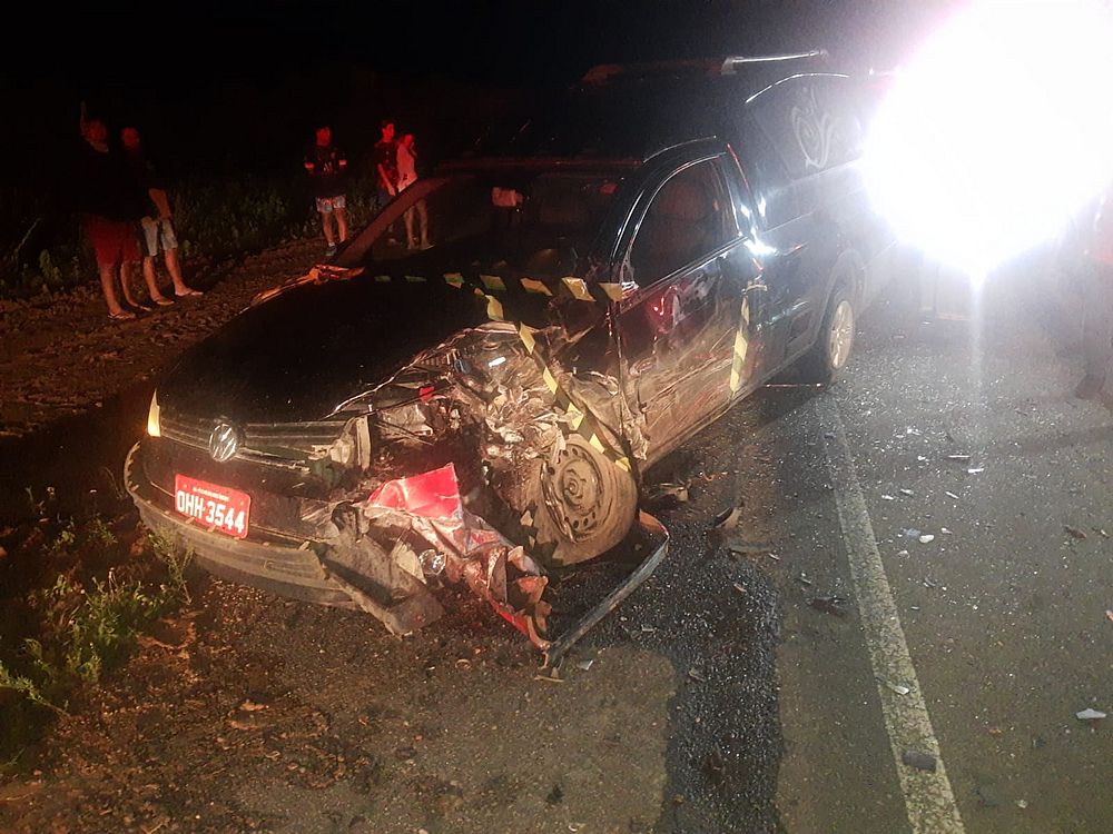 Com o impacto da colisão, os veículos ficaram com a parte frontal destruída. A Polícia Militar esteve no trecho da rodovia e isolou a área.