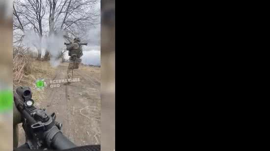 Dois tanques - um está em chamas - são vistos à distância. "Minha mãe vai me abraçar para caramba", diz um dos soldados, erguendo o punho. "Bom trabalho rapazes! Glória à Ucrânia!"