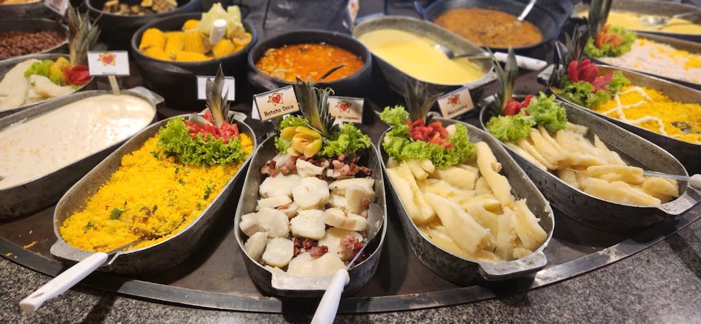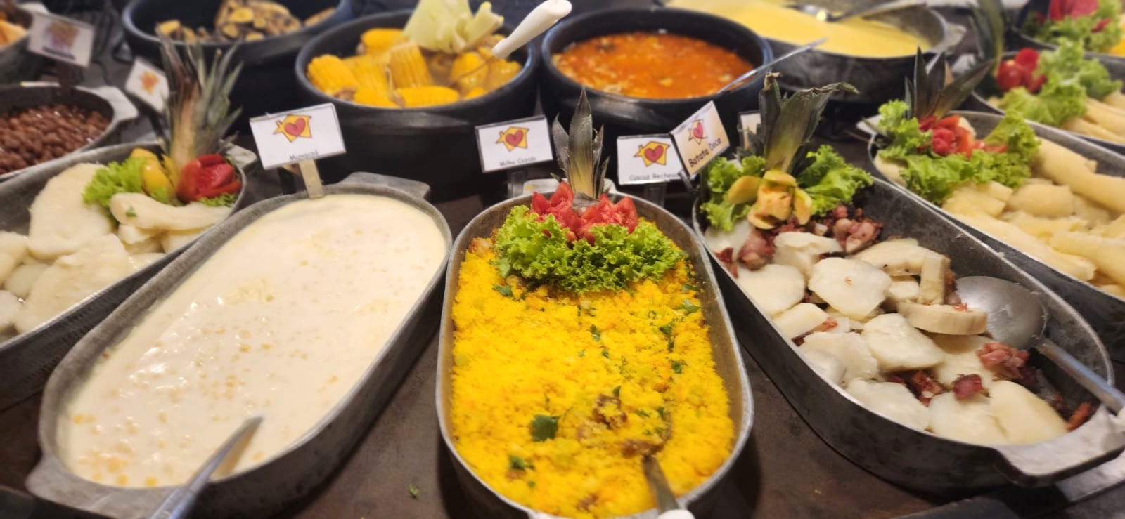 No Jaraguá, de segunda à sábado, tem almoço e jantar e, aos domingos, café da manhã com bufê regional