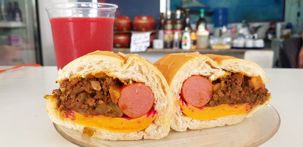 Carne moída – A receita do cachorro quente é mais simples, bem nordestina. São dois tipos de corte de carne – depois de moída, vai para o fogo com tomate, cebola, pimentão, coentro e tempero. Não leva molho de tomate e fica bom. A salsicha é apenas uma (marca Sadia ou Perdigão). Para saciar a fome de sua clientela fiel, a iguaria é preparada três vezes ao dia. Quem não gosta do pão francês pode optar pelo seda. Também pode acrescentar queijo do reino e retirar a salsicha.