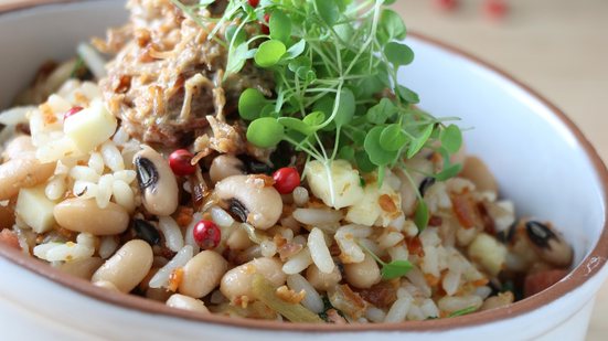 O sabor do sertão vai marcar o encerramento da Artnor, do Sebrae, no Mercado das Artes 31, no próximo dia 22 de março, às 16h. Fica ligado: é de graça, vai ser gigante e preparado pela equipe do chef Picuí com chefs convidados do bairro do Jaraguá. Entre eles: Thiago Brandão, do Brotto; Izabella, da Toca do Calango; Fernando Costa, do Aroma Café; Solange Catão, do Porto Sol; Joseane Farias, do Xique-Xique; César Piriz, do Boteco do Urugua; e Josefa, do Recanto Baiana. Preparado em grande escala para o público da Artnor, o baião ganha proporções generosas: são 12 kg de carne de sol, 5 kg de bacon, 10 kg de linguiça calabresa defumada, 10 kg de queijo coalho, 22 kg de feijão, 29 kg de arroz cozido, além de 6 kg de cebola picada, 1 kg de alho e 3 litros de manteiga de garrafa.