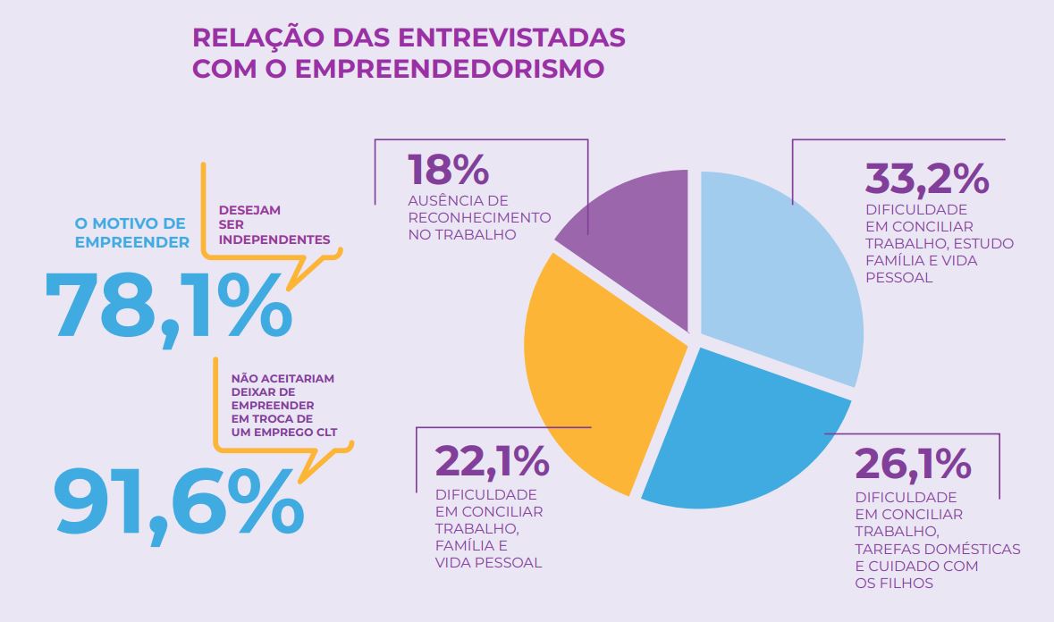 Outro dado importante é que 78,1 % das mulheres empreendedoras afirmam que se tornaram empreendedoras para serem independentes.