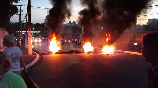 Imagens feitas por pessoas que transitavam (veja abaixo) pelo local mostram que os manifestantes colocaram fogo em pneus e fecharam as duas vias da avenida.