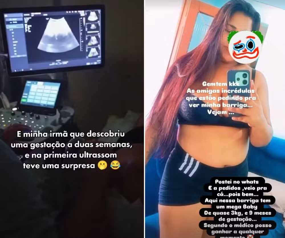 Quem contou a história foi a irmã da grávida, Jaíne Menezes, que compartilhou o vídeo do momento do ultrassom nas redes sociais e se surpreendeu com a repercussão. Segundo ela, tudo começou quando a irmã passou a sentir dores e perceber que a barriga estava diferente. Ela chegou a fazer um teste de gravidez de farmácia, que deu negativo. A hipótese parecia descartada.