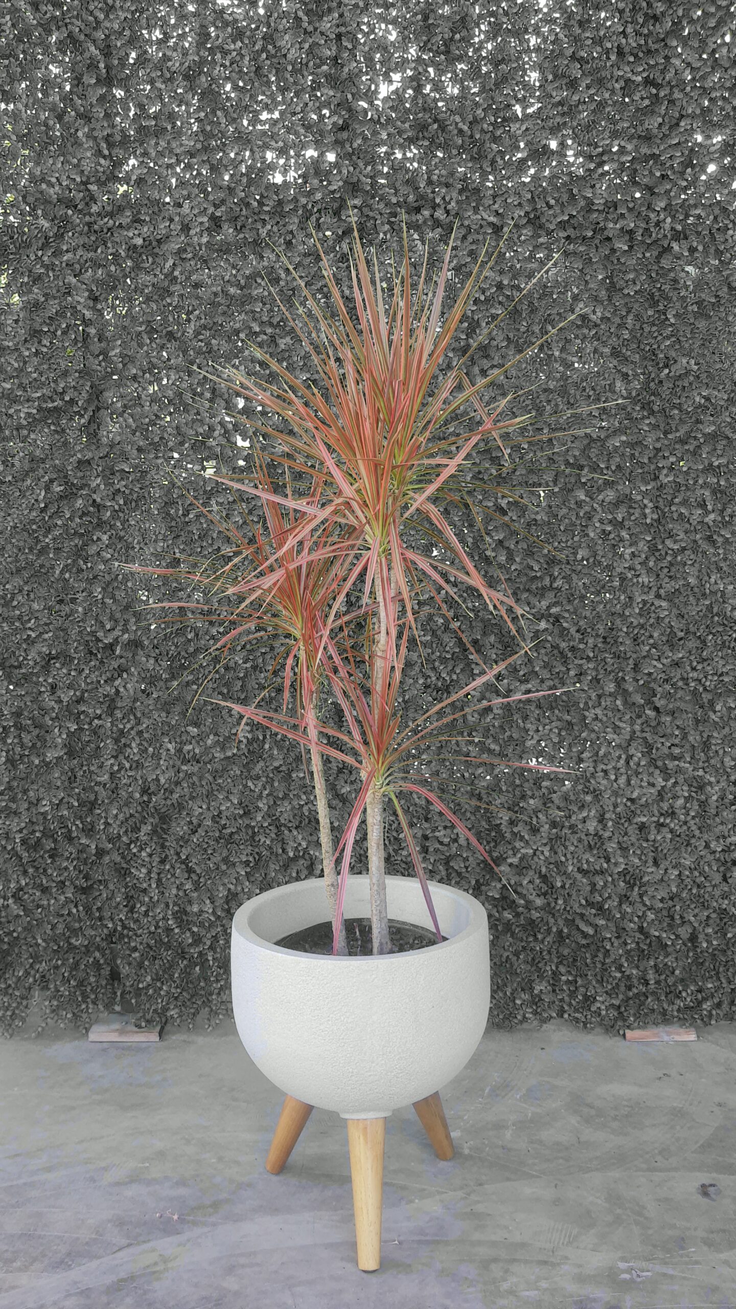 Além da estética, a Dracena tricolor é conhecida por sua facilidade de cuidado, tornando-a uma escolha popular para quem está começando. Ela prospera em ambientes com luz indireta, mas também pode tolerar condições de luz em curtos períodos do dia. Regas moderadas e solo bem drenado são essenciais para manter a saúde da sua planta. Além de estar associada a positividade e boas energias.