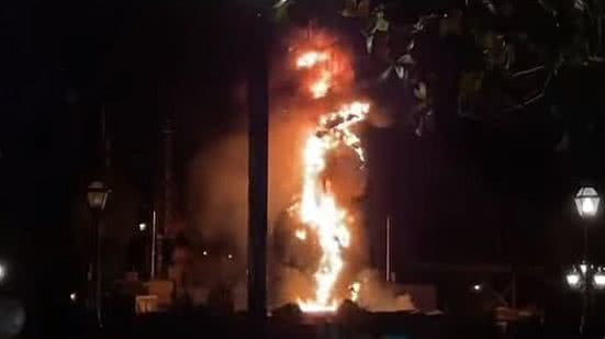 Um dragão de mais de 10 metros de altura, personagem do filme "Malévola", pegou fogo na Disney Califórnia durante o show "Fantasmic" na noite de sábado (22). Um vídeo do incidente mostra o dragão totalmente envolto em chamas, levando os membros do elenco a serem evacuados do local.